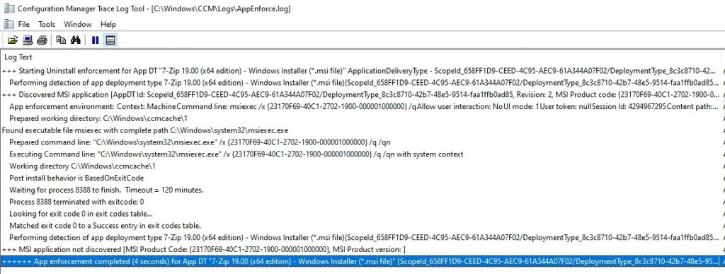 - Make sure the application has an uninstall deployment in your ConfigMgr console.