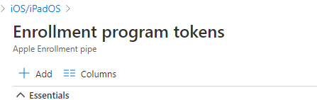Login to MEM admin center and go to Devices\iOS/iPadOS\iOS/iPadOS enrollment. Click Enrollment program tokens.