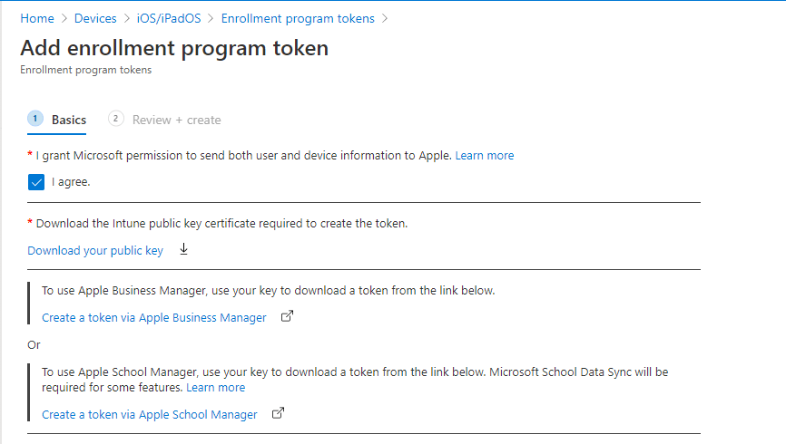 Since we are using the ABM, click the link to Create a token via Apple Business Manager.