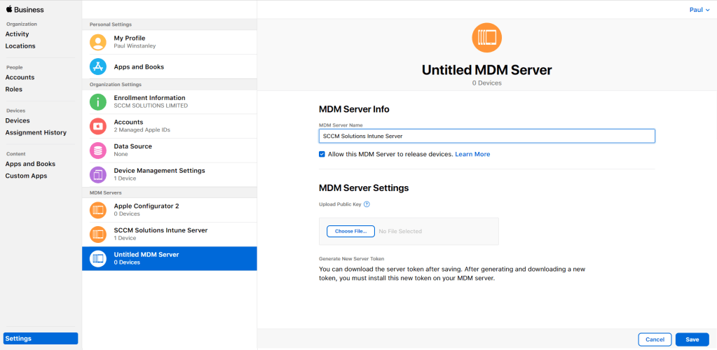 Enter a MDM Server Name and ensure the Allow this MDM Server to release devices checkbox is ticked.