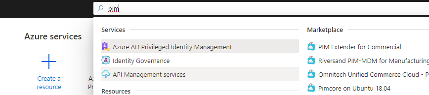 To access PIM, type in PIM or Pri in the search bar in the Azure portal.