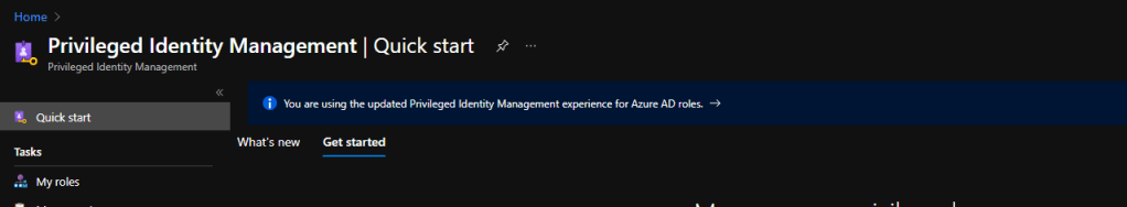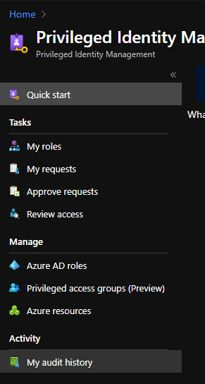 Take a note of the menu structure in PIM, the Tasks section relate to things you can do, such as rise your privileges, approve requests etc.