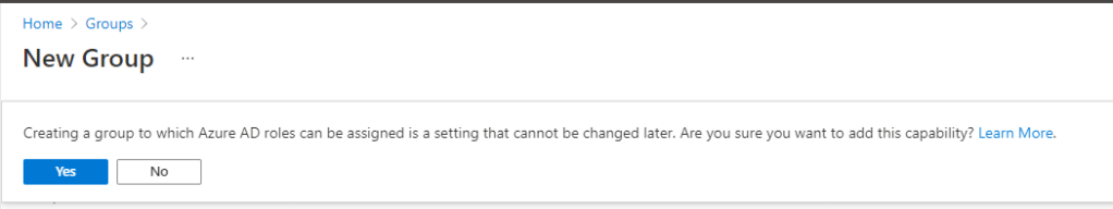 You will be prompted with a warning that assigning as a role-assignable group can’t be changed. Click Yes to confirm the action.