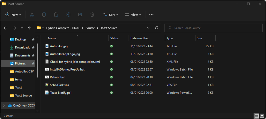 - Check for hybrid join completion.xml – this is a exported scheduled task and will act as the method to trigger the toast notification.