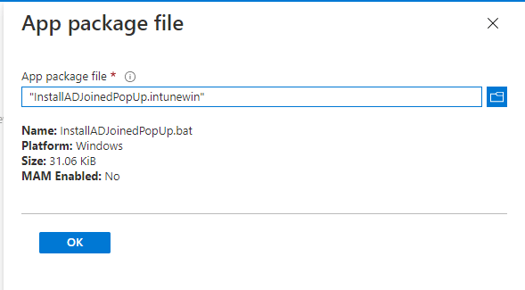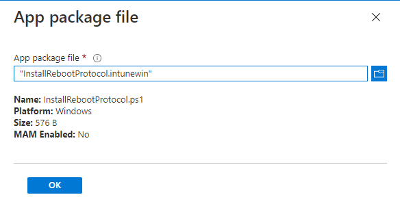 Navigate to the location of your .intunewin file and select it. Click OK.