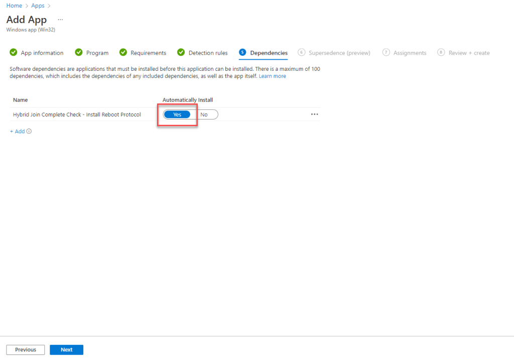 We want to ensure that we add an Assignment to this app. I have targeted my dynamic group for hybrid joined devices which is just the group I am using to target my hybrid join Autopilot deployment profile. Click through the wizard to completion.