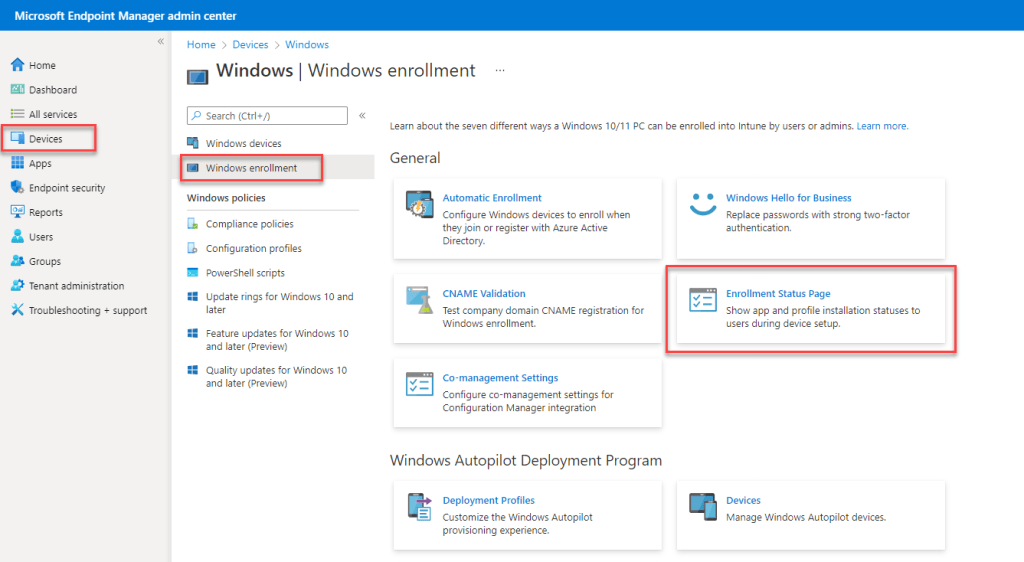 In the Endpoint Manager portal, go to Devices\Windows\Windows enrollment\Enrollment Status Page and select the ESP policy you are using.