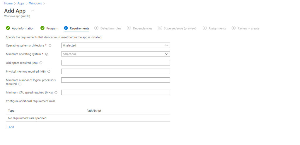 When creating Win32apps in Intune, we have a standard set of requirements we can use to determine if an app will install on a device or not. These are: