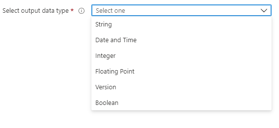 Note that this will populate the Script name field with the script name. Set another settings as required. Click the Select output data type drop down. This will be used to define what the requirement will capture from the PowerShell script.