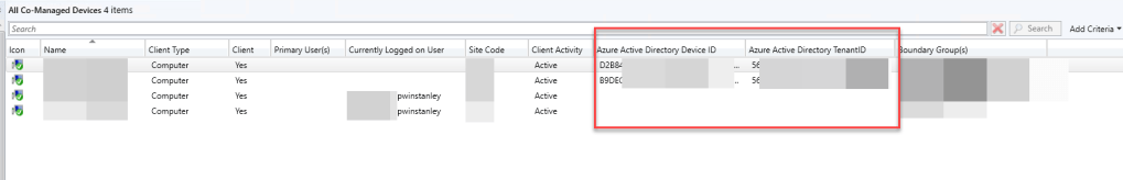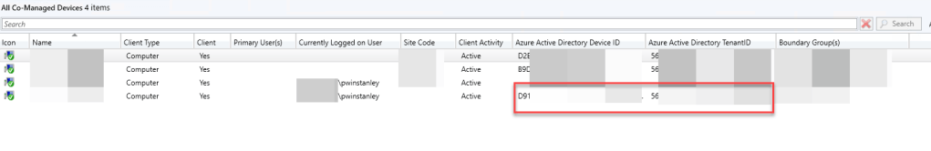 I noticed that some co-managed devices were not reporting back the Azure AD Device and Tenant ID information in the ConfigMgr console.