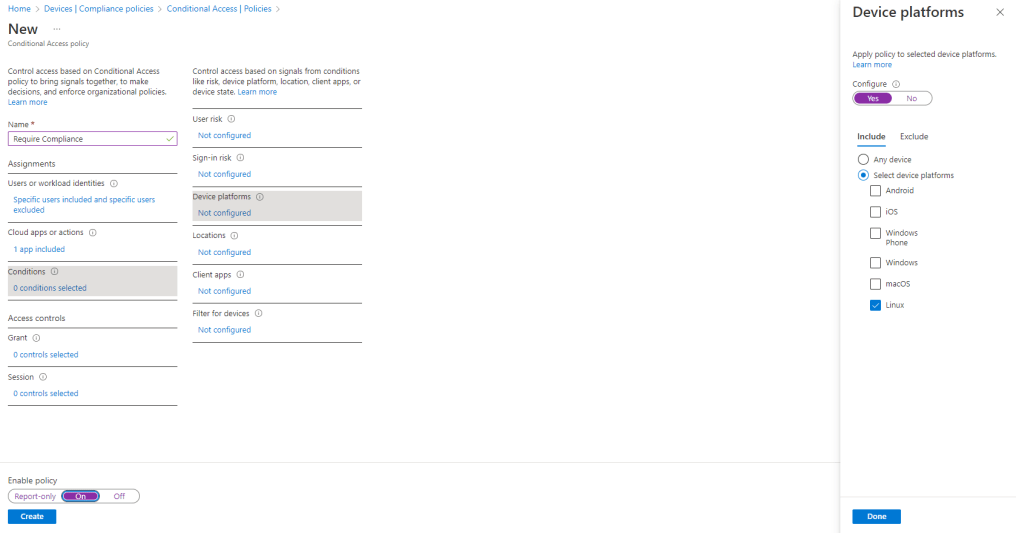Now we are going to set up a compliance policy for the Linux device and block access to Office 365 if not compliant.