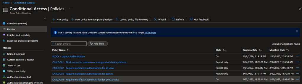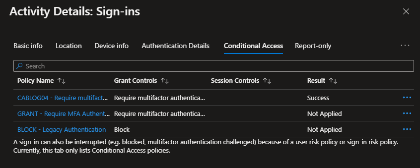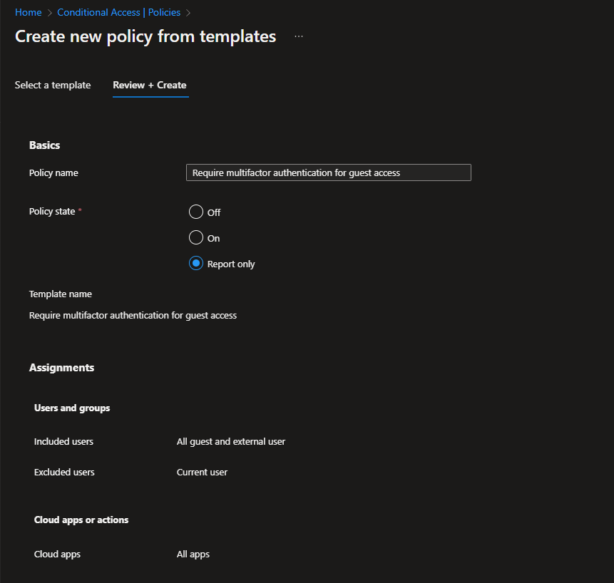 When the policy is created it is set as Report-Only. This is good practice, as the impact of enabling the policy can be assessed before doing so.