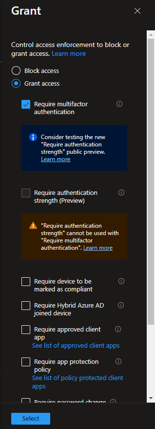 - Management of the policies via an administrator with either Global Administrator, Conditional Access or Security Administrator rights. Some MFA settings can also be managed by the Authentication Policy Administrator.