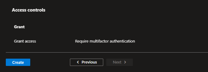 In the Access controls\Grant section of the rule, you can see that Require multifactor authentication is selected as the control.
