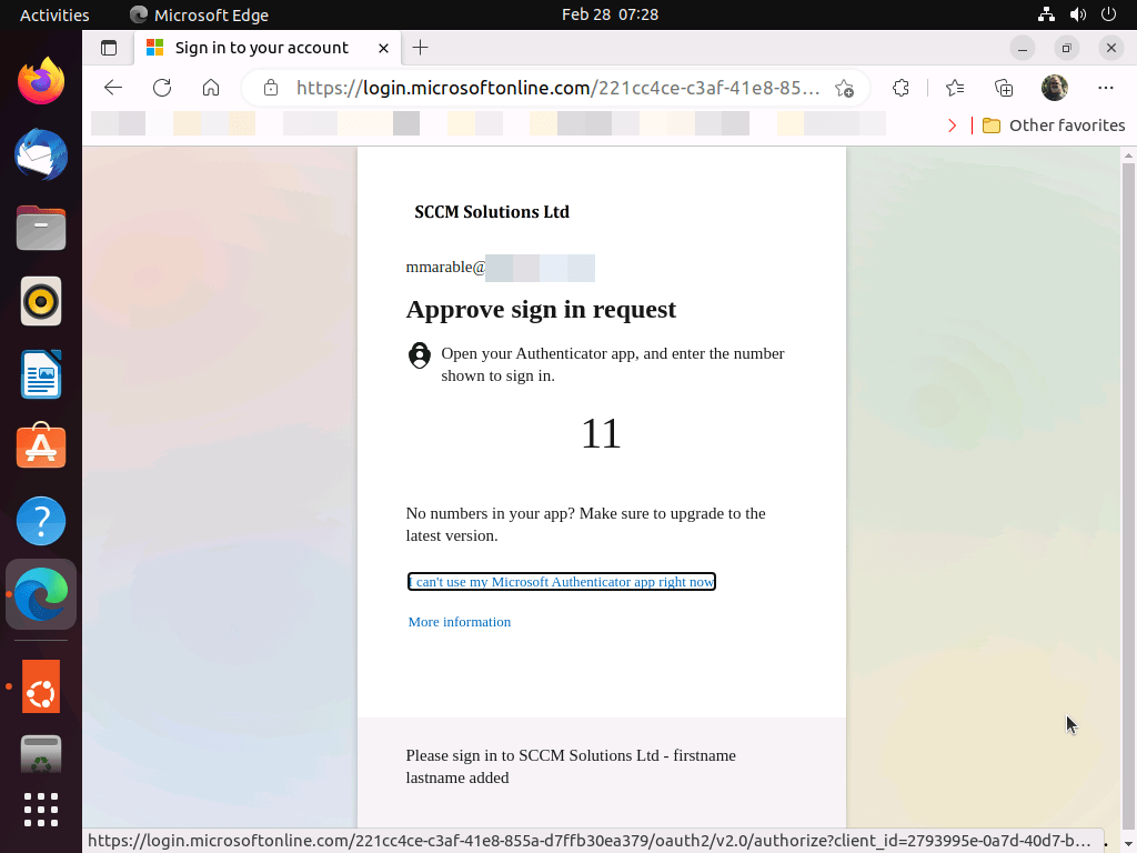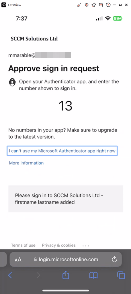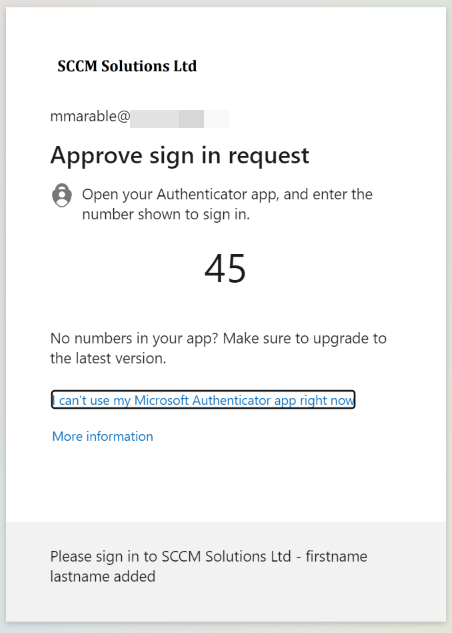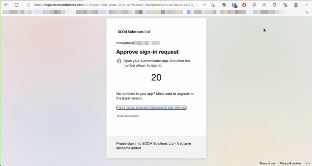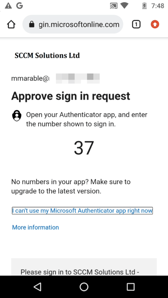 The following tests were undertaken on each device platform, the end result expected would be that we were prompted for MFA if the guest user attempted to authenticate to a cloud app in our tenant. Mike’s external account, was added to the Conditional Access role. Allow users to remember multi-factor authentication on devices they trust was not enabled in the tenant. We tested the policy by authenticating into myapplications.microsoft.com and in the users profile we switched the organization to SCCM Solutions.