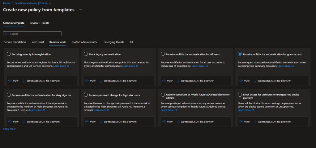 The policy is available in the Zero trust, and Remote Work scenarios, or you can click All to display all the templates.