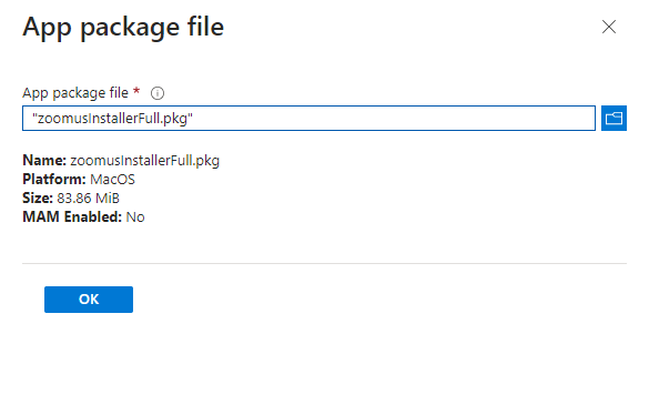 Select OK on the App package file pane to add the app.