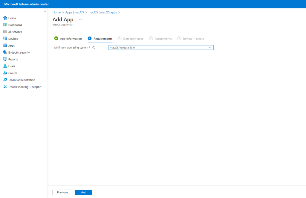 Enter Minimum operating system in the Requirements section. Click Next.