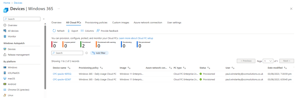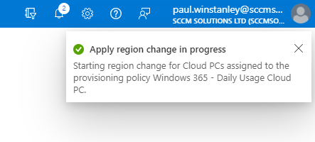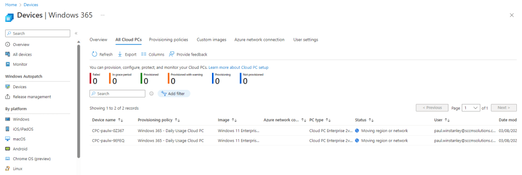 Throughout the move, you can track the progress by checking the status in the All Cloud PCs section. Whilst moving, the Status will state Moving region or network. The move is considered complete once the status displays Provisioned.