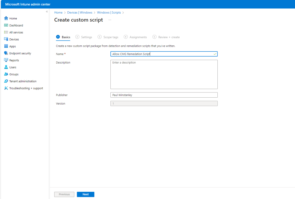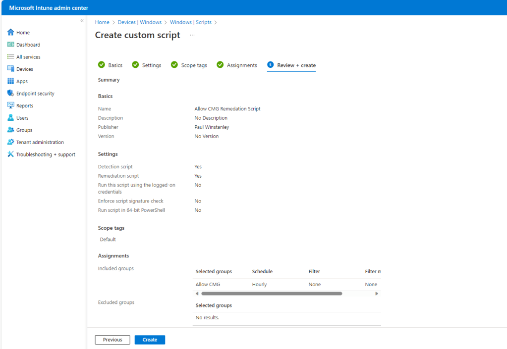 Fear not because our scripts will enable comms with the CMG when they execute on the device and get that information into ConfigMgr.