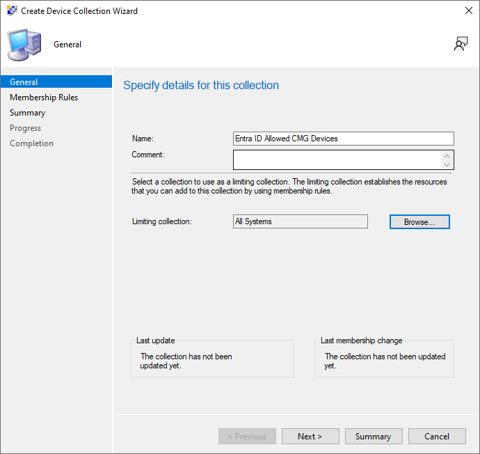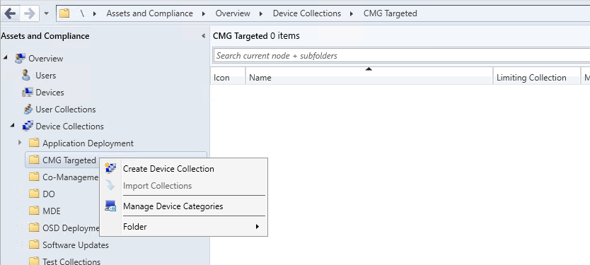 Now we have our belt and braces approach to setting the DisAllowCMG registry key to allow the use of the CMG we need this to stick in ConfigMgr and not be set back to 1. To achieve this we need to create a collection of applicable devices and target them for enable use of the CMG.