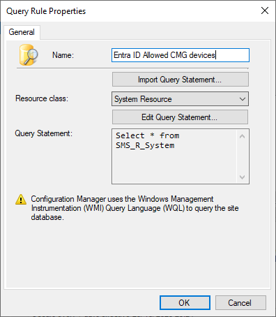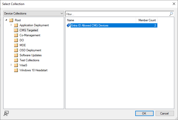 Target the collection created previously and click OK. This will ensure that on the next policy retrieval the device will be allowed access to the CMG in a targeted way in ConfigMgr.