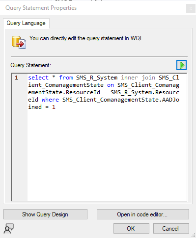 If you query that class you can see that there is a field for AAD Joined. So we can use that as our anchor for our query collection.