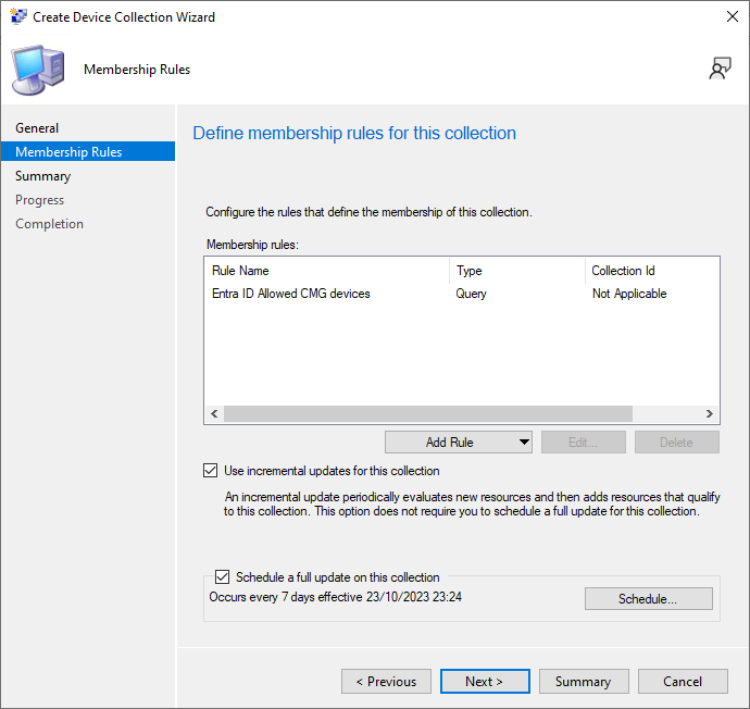 Set Use incremental updates for this collection and click Next. Click through the wizard to completion.