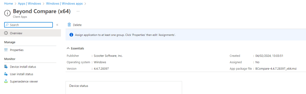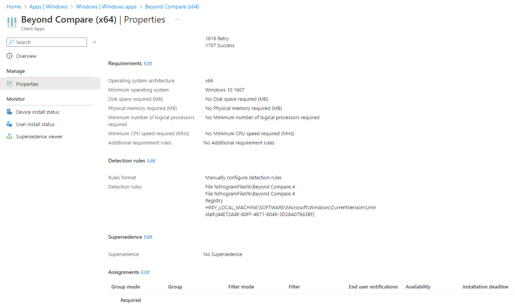 As with our Win32 apps, we can go into Assignments and targeted a relevant group or devices or users. Click the Edit link next to Assignments.