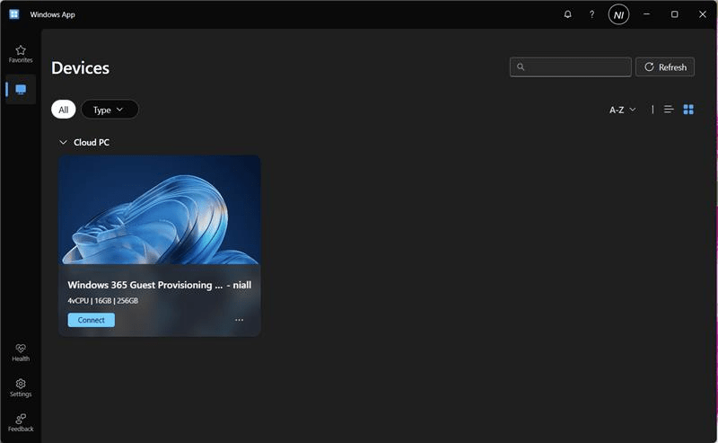 - Connection to the Cloud PC must be via the Windows App or browser.