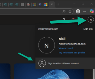 When navigating to windows365.microsoft.com, the user will authenticate with their account. Then in the top right hand corner of the web page, the user clicks their profile and then chooses Sign in with another account.